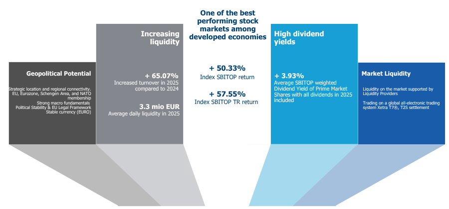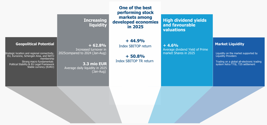 Government’s Strategy for Capital Market Development indicates potential for further increase of market liquidity and new listings.